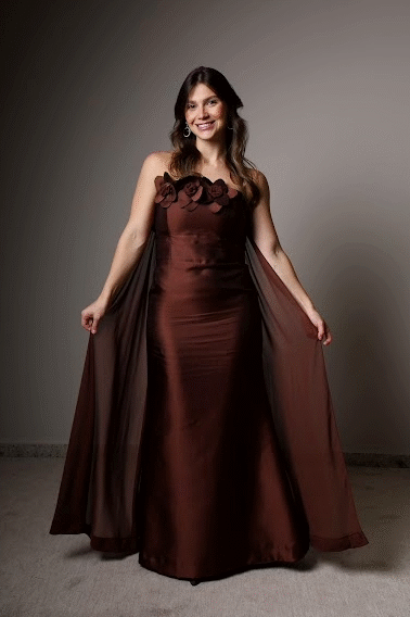 O Vestido Serena traduz o equilíbrio entre delicadeza e presença. Todo bordado em cristais aplicados sobre tecido com brilho, o modelo ombro único valoriza o colo com sofisticação e desenha a silhueta de forma fluida. O brilho suave acompanha os movimentos, criando um efeito cintilante que ilumina a pele. Uma escolha elegante e atemporal para formandas, madrinhas e convidadas que buscam um visual refinado e natural.