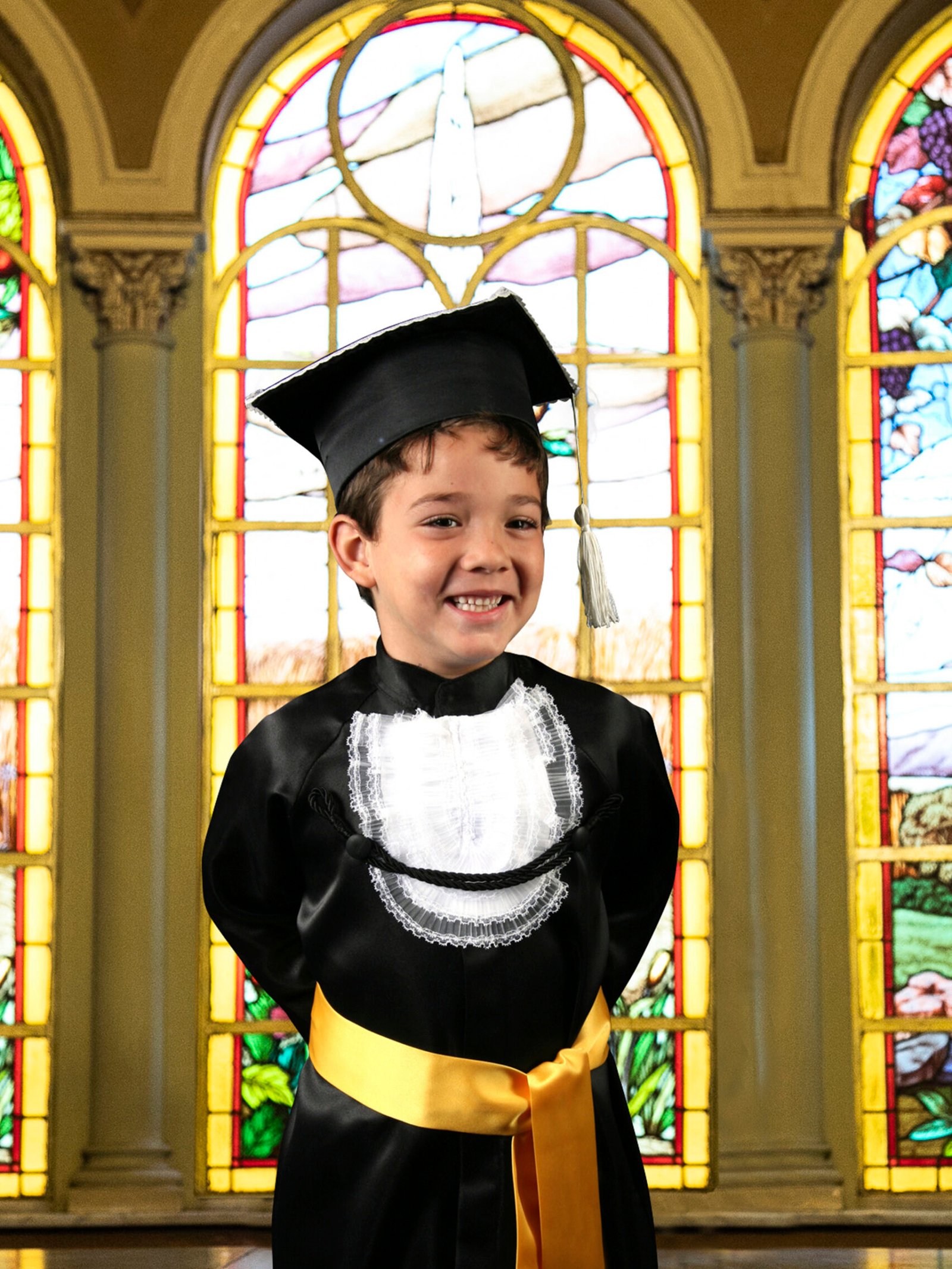 A Beca Infantil da Tidy é pensada para momentos inesquecíveis como formaturas do ensino infantil e fundamental I. Com modelagem adaptada ao público infantil, ela proporciona conforto, leveza e um visual encantador para os pequenos formandos.