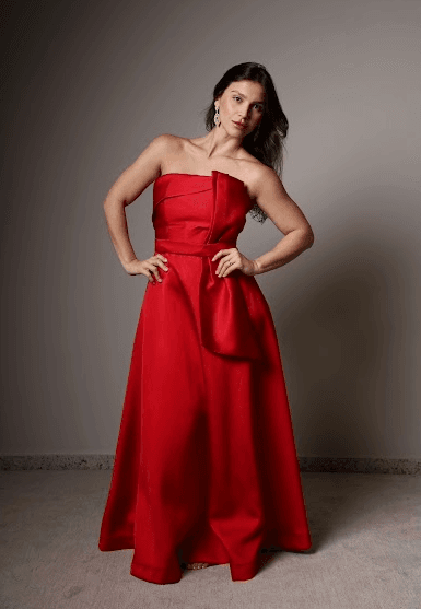 Feito com zibeline em tom vermelho intenso, o vestido Athena é uma celebração da elegância clássica com toque contemporâneo. O busto estruturado e o recorte geométrico realçam a silhueta, enquanto o caimento impecável do tecido confere movimento e sofisticação. Uma escolha perfeita para madrinhas, formandas e convidadas que desejam um visual de impacto, equilibrando força e feminilidade.