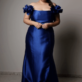 O Vestido Blue Lotus traduz força e feminilidade em uma única peça. Confeccionado em zibeline azul royal, o modelo tomara que caia traz flores estruturadas aplicadas nos ombros, criando um efeito tridimensional sofisticado. O corte ajustado ao corpo e a fenda frontal suave alongam a silhueta, enquanto o tecido acetinado reflete a luz com delicadeza. Ideal para madrinhas, formandas e eventos de gala que pedem presença e elegância.