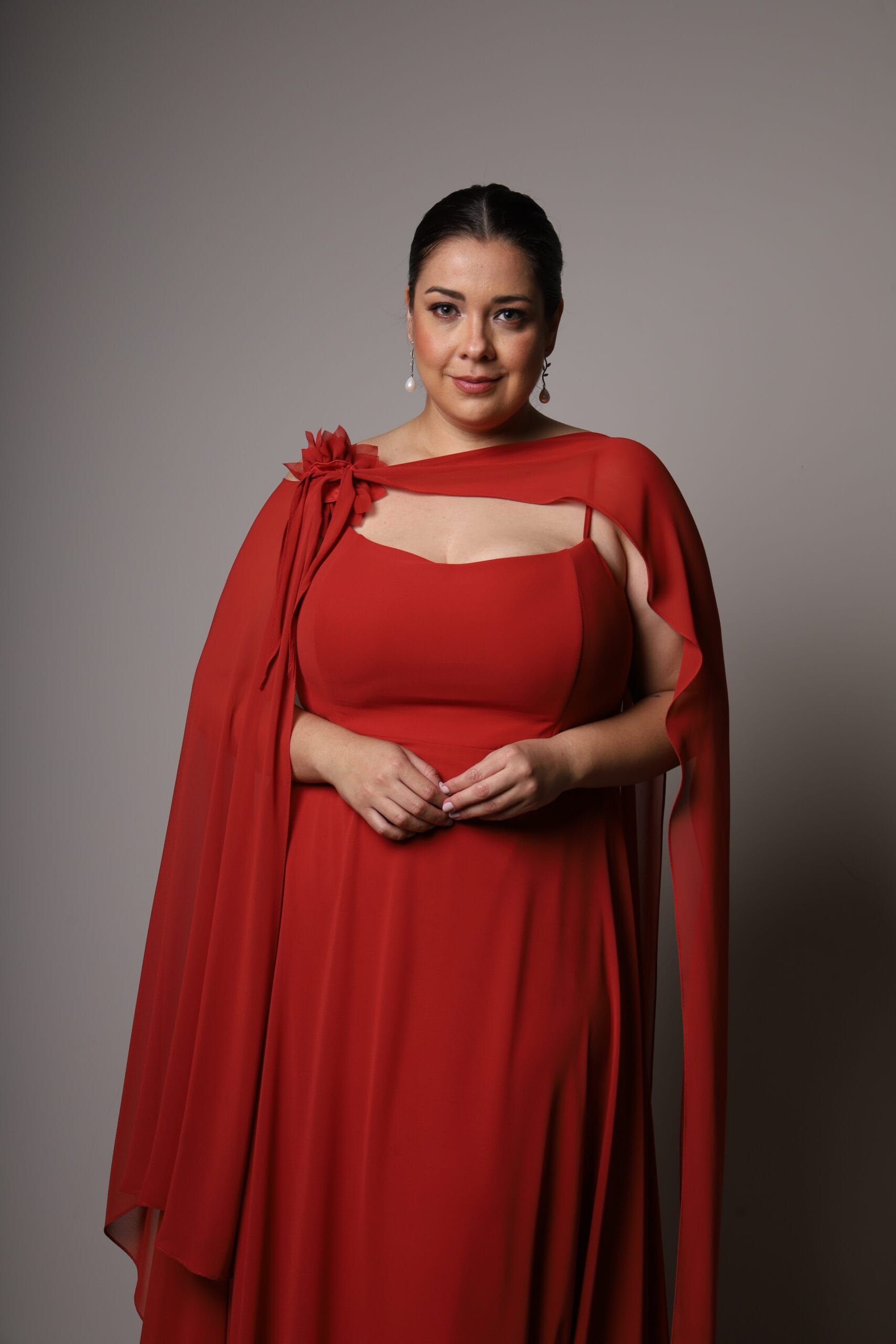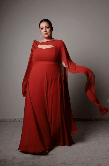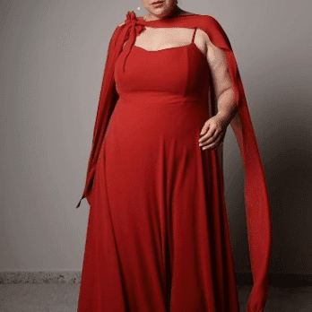 O Vestido Carmim Ícaro traz imponência e movimento em um design marcante. O decote reto e estruturado valoriza o colo com elegância minimalista, enquanto a capa leve que parte dos ombros adiciona um toque teatral e sofisticado. Em tom carmim intenso, o modelo traduz confiança e presença