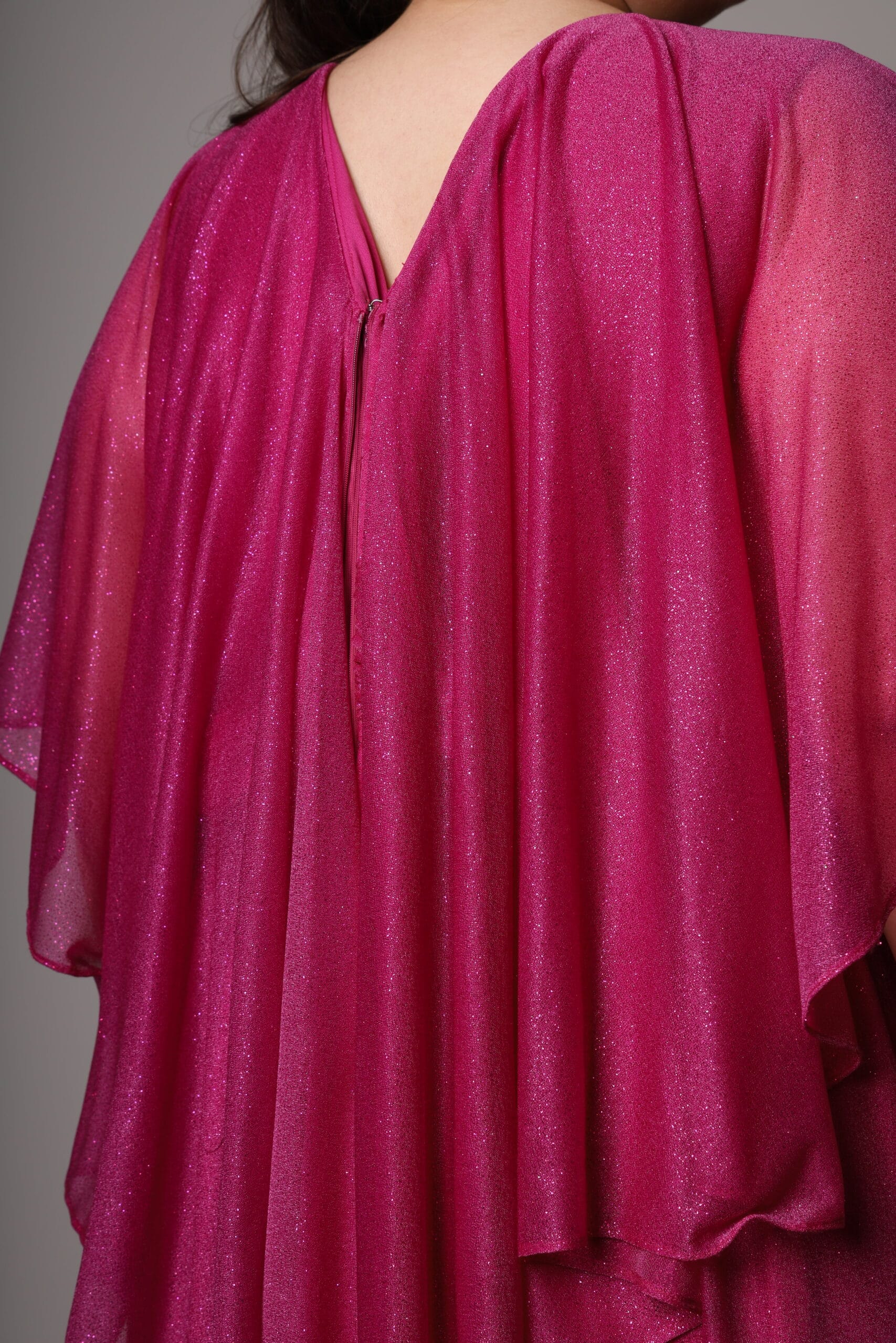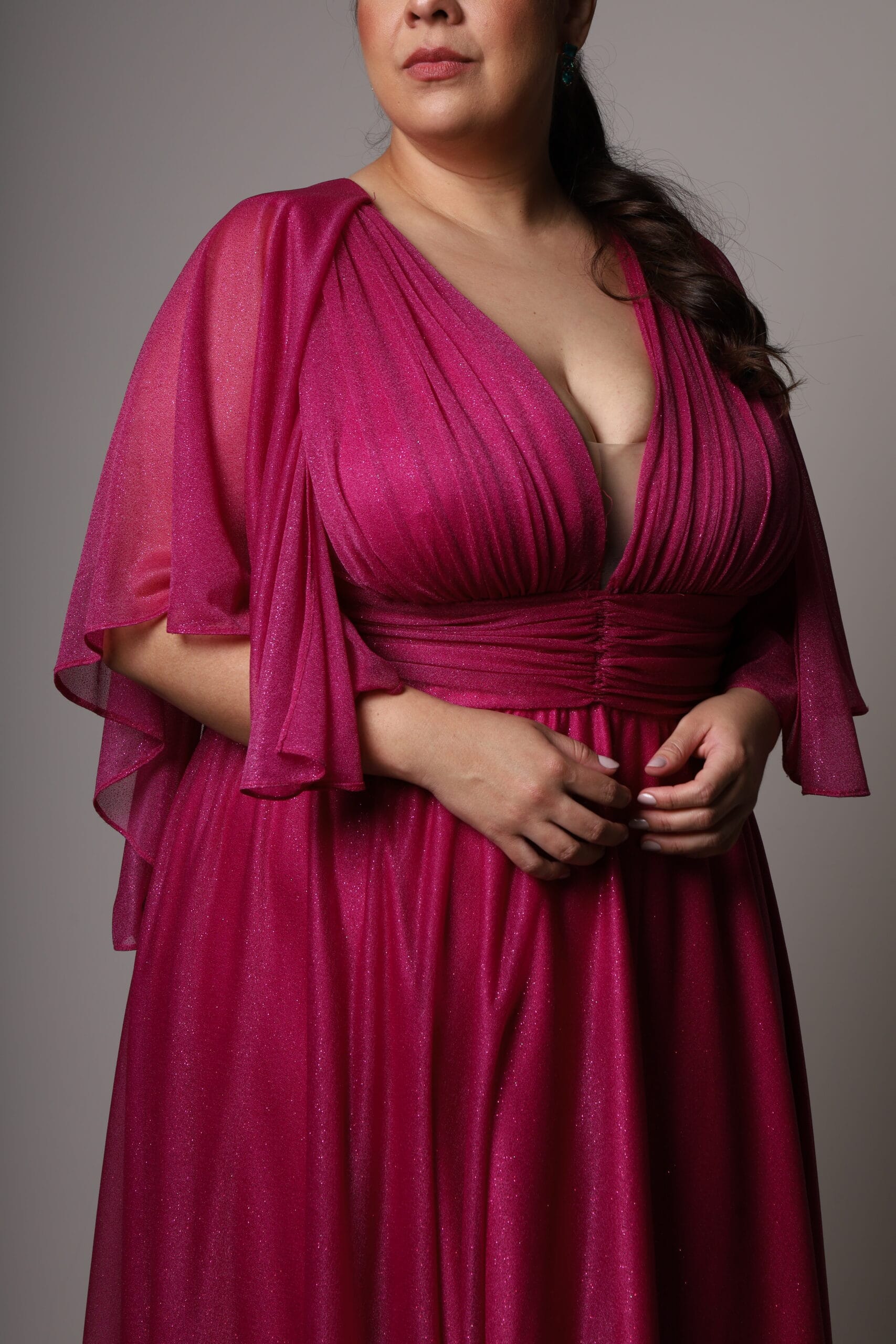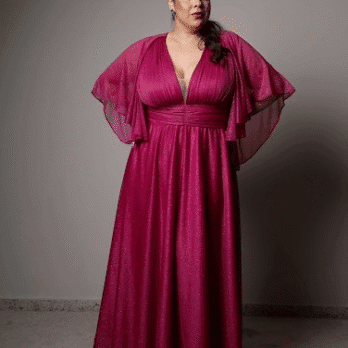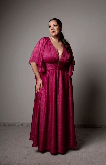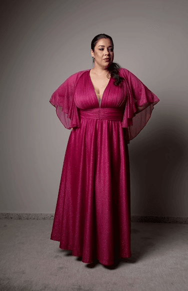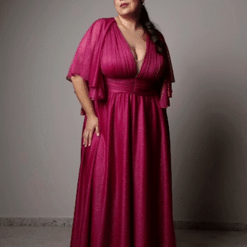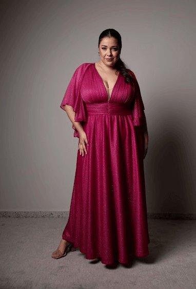O Vestido Fúcsia Luar combina brilho sutil e leveza em um design encantador. Confeccionado em malha com delicado brilho, ele tem decote em “V” que valoriza o colo, faixa marcando a cintura e mangas amplas em efeito borboleta, que trazem fluidez e movimento. O tom fúcsia luminoso e o caimento leve fazem desta peça uma escolha perfeita para quem busca elegância com conforto. Ideal para madrinhas, formandas e convidadas de eventos noturnos.