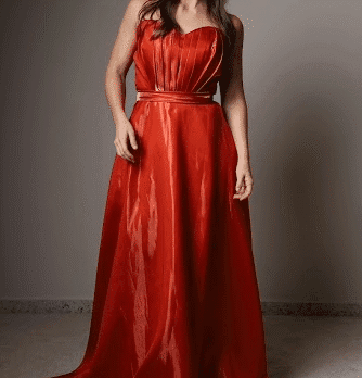 Feito com zibeline glow em tom terracota, o vestido Gisele traduz o equilíbrio entre estrutura e leveza. O corpete drapeado realça o busto com elegância, enquanto a saia ampla e fluida traz movimento e imponência. O brilho acetinado do tecido valoriza o tom quente e sofisticado, ideal para madrinhas, formandas e mães modernas que desejam um visual refinado e atemporal.