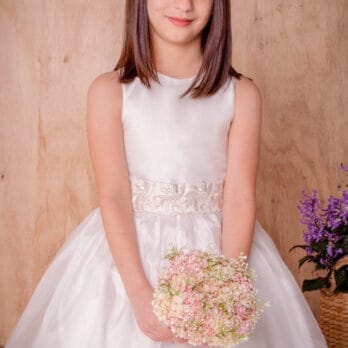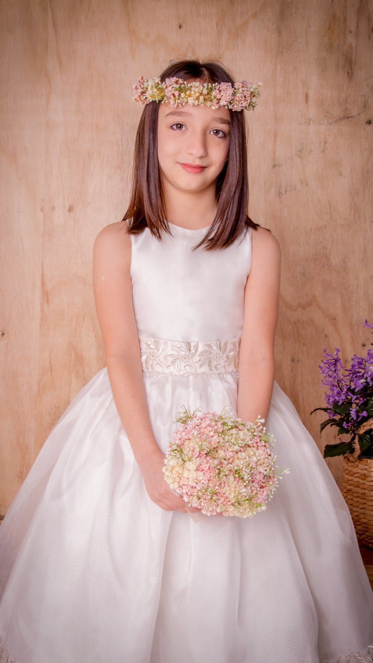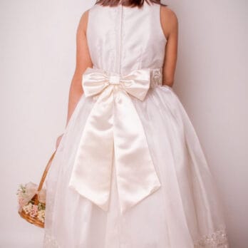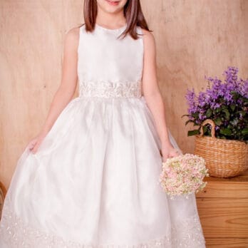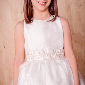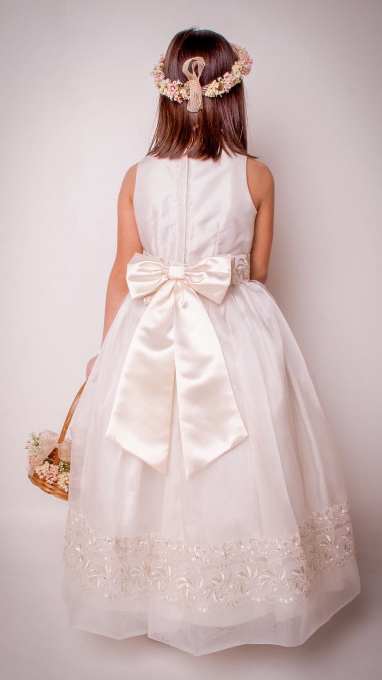 O Vestido Ivory combina sofisticação e suavidade em um tom off white perolado. Com cintura marcada por bordados sutis e um laço acetinado nas costas, o modelo é perfeito para cerimônias e momentos especiais. O tecido leve e a saia com volume delicado criam movimento e conforto, enquanto o acabamento refinado garante elegância em cada detalhe. Um vestido atemporal, encantador e cheio de doçura.