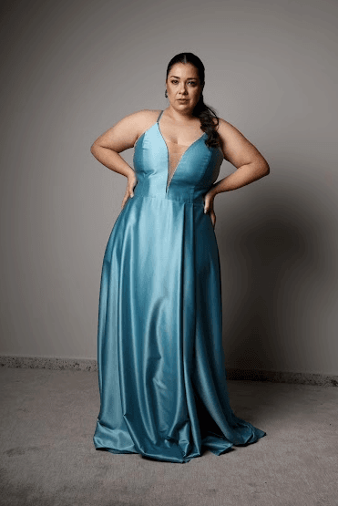O Vestido Malva di Luce combina suavidade e sofisticação em um tom raro e encantador. Confeccionado em zibeline acetinado, o modelo valoriza o colo com seu decote em “V” profundo e alças finas, enquanto a saia ampla cria um movimento fluido e elegante. O verde malva traz uma luminosidade delicada e atemporal, perfeita para madrinhas, formandas ou convidadas que desejam um visual elegante sem abrir mão da leveza.