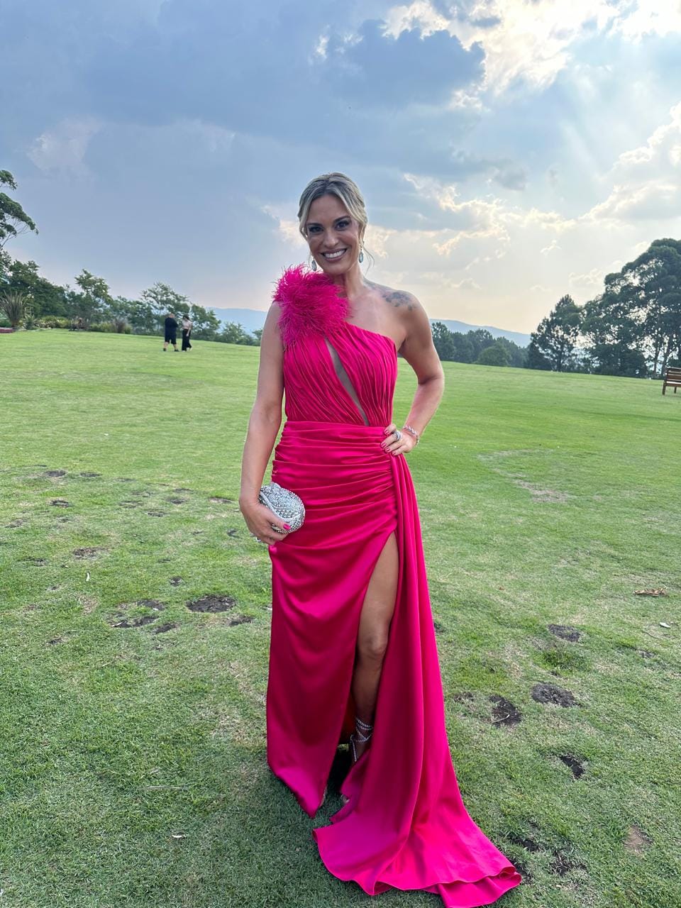 O vestido Márcia une sensualidade e sofisticação em um design de impacto. Feito em cetim pink, o modelo tem caimento fluido e brilho delicado, que valoriza as curvas com elegância. O decote de um ombro só ganha destaque com o detalhe em plumas, um toque de glamour que equilibra ousadia e refinamento. A fenda lateral alonga a silhueta e traz leveza ao movimento. Ideal para madrinhas, formandas ou convidadas que desejam brilhar com estilo e personalidade.
