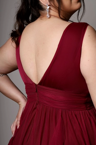 O Vestido Marsala Essence traduz o equilíbrio entre força e suavidade. Feito em tule leve, com camadas sutis que criam movimento e profundidade, ele valoriza a silhueta com um decote em “V” elegante e uma cintura marcada que alonga a forma. O tom marsala reforça sua sofisticação — intenso, feminino e atemporal — ideal para madrinhas, formandas ou convidadas que desejam um visual refinado e envolvente.