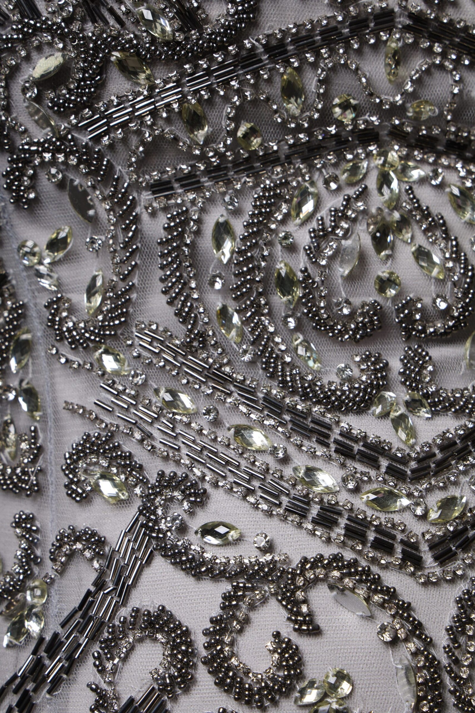 Vestido prata bordado com pedrarias e tule