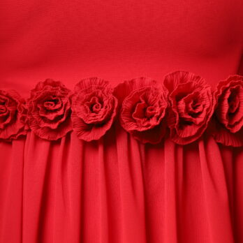 O Vestido Red Garden traz o equilíbrio entre romantismo e sofisticação. Confeccionado em musseline leve e esvoaçante, o modelo apresenta decote reto, cintura marcada por delicadas flores em tecido e mangas em efeito capa que conferem um movimento fluido e envolvente.