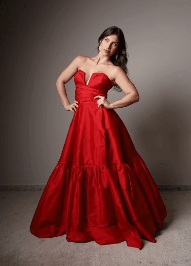 Feito com tafetá em tom vermelho intenso, o vestido Vittoria traduz presença e elegância em cada detalhe. O decote estruturado valoriza o colo com imponência, enquanto a saia ampla cria um movimento envolvente e fluido. O brilho acetinado do tecido realça a silhueta e confere um ar de sofisticação atemporal. Ideal para madrinhas e formandas que buscam um look marcante, moderno e de alta classe.