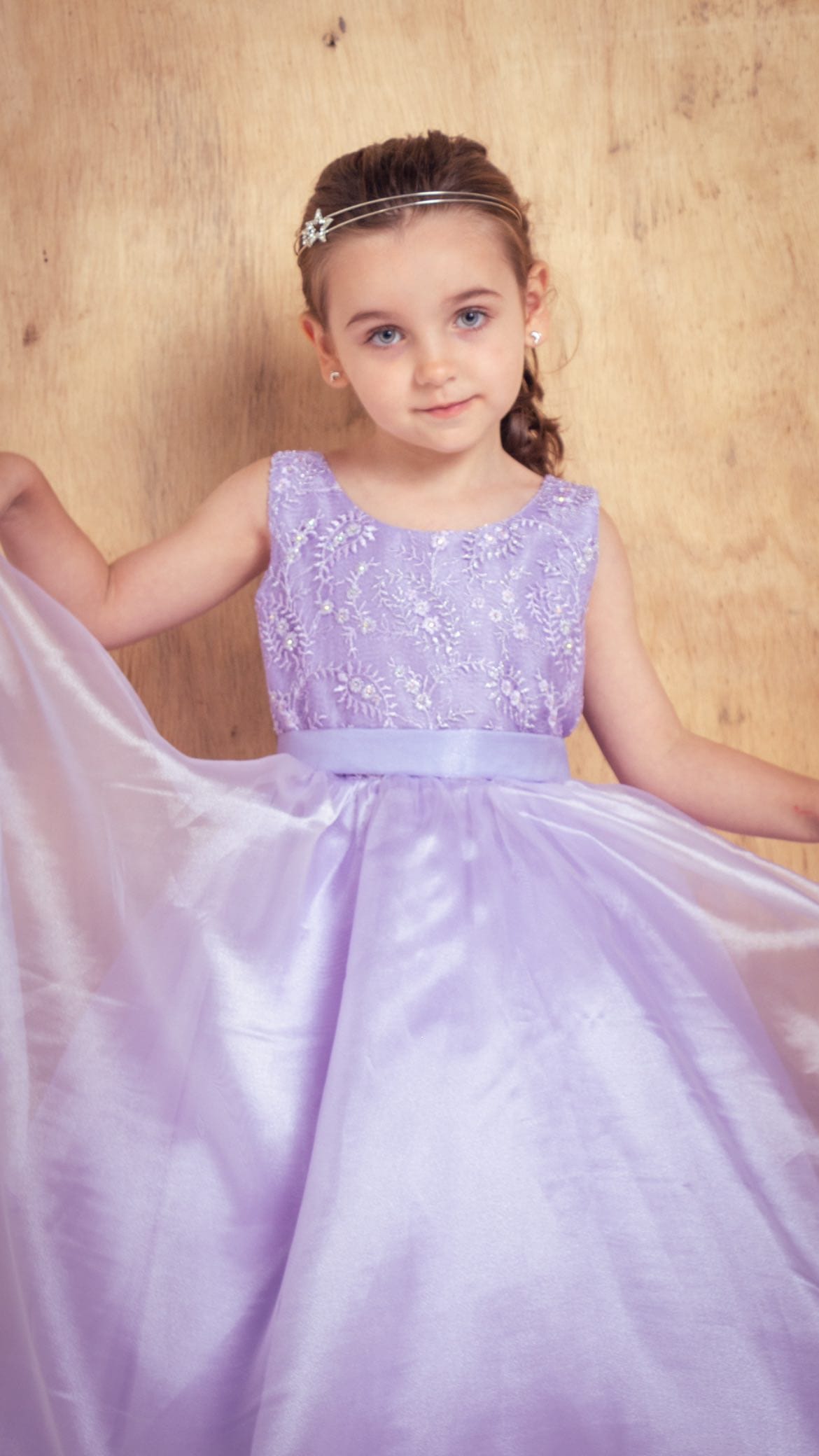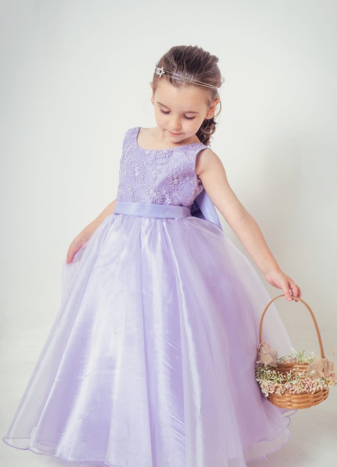 O Vestido Amélie traz a delicadeza dos contos infantis em sua composição refinada de organza e renda. O corpo bordado com flores em relevo contrasta suavemente com a fluidez da saia ampla, criando um visual etéreo e encantador. Um laço discreto nas costas completa o charme da peça, perfeita para daminhas e celebrações ao entardecer.