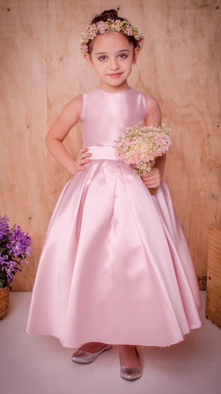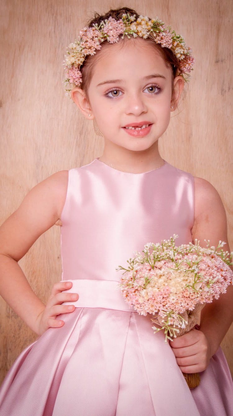 O Vestido Mariana traduz a delicadeza e o encanto das pequenas princesas em ocasiões especiais. Feito em zibeline rosé, o modelo tem corte clássico com saia rodada e cintura marcada, criando um caimento impecável e sofisticado. O tecido acetinado traz leve brilho e estrutura, ideal para daminhas, aniversários e eventos encantadores. Finalizado com laço nas costas, o look une elegância e pureza em cada detalhe.