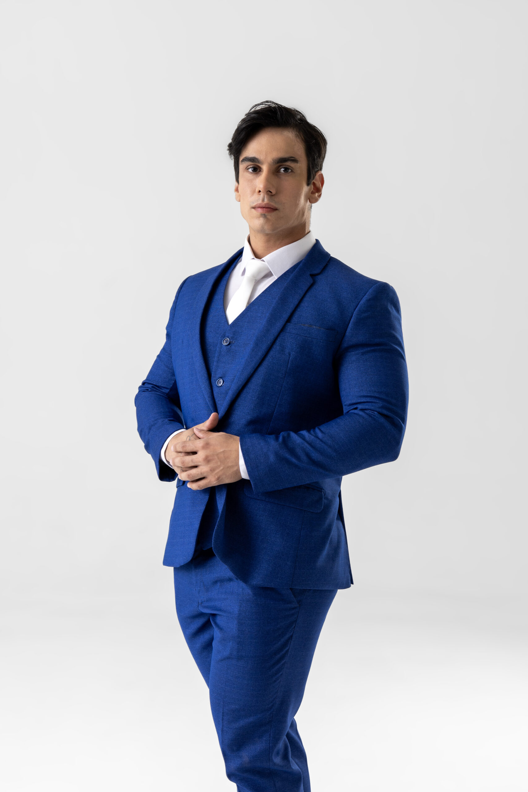O Terno Slim Azul Royal une sofisticação e estilo em uma proposta contemporânea. Seu corte slim proporciona caimento impecável e valorização da silhueta, enquanto o tom azul royal remete à elegância vibrante e atual. O conjunto com colete e lapela clássica torna-se ideal para formaturas, casamentos e celebrações em que o visual masculino ganha protagonismo. Um modelo que traduz confiança e presença com naturalidade.