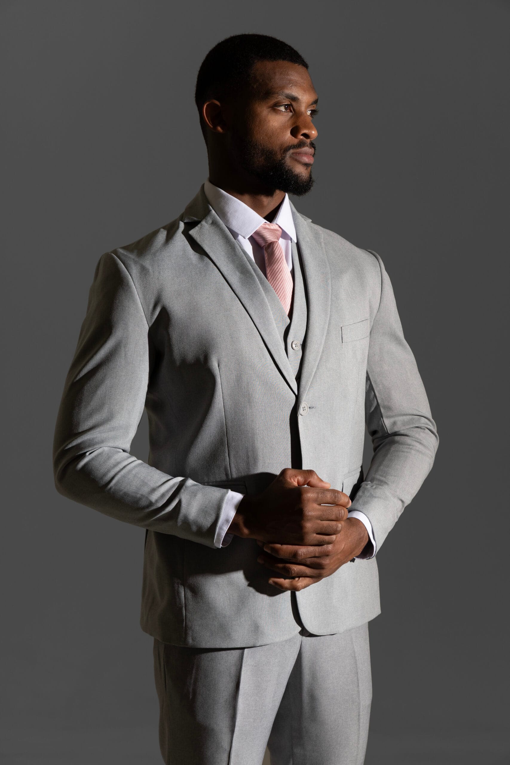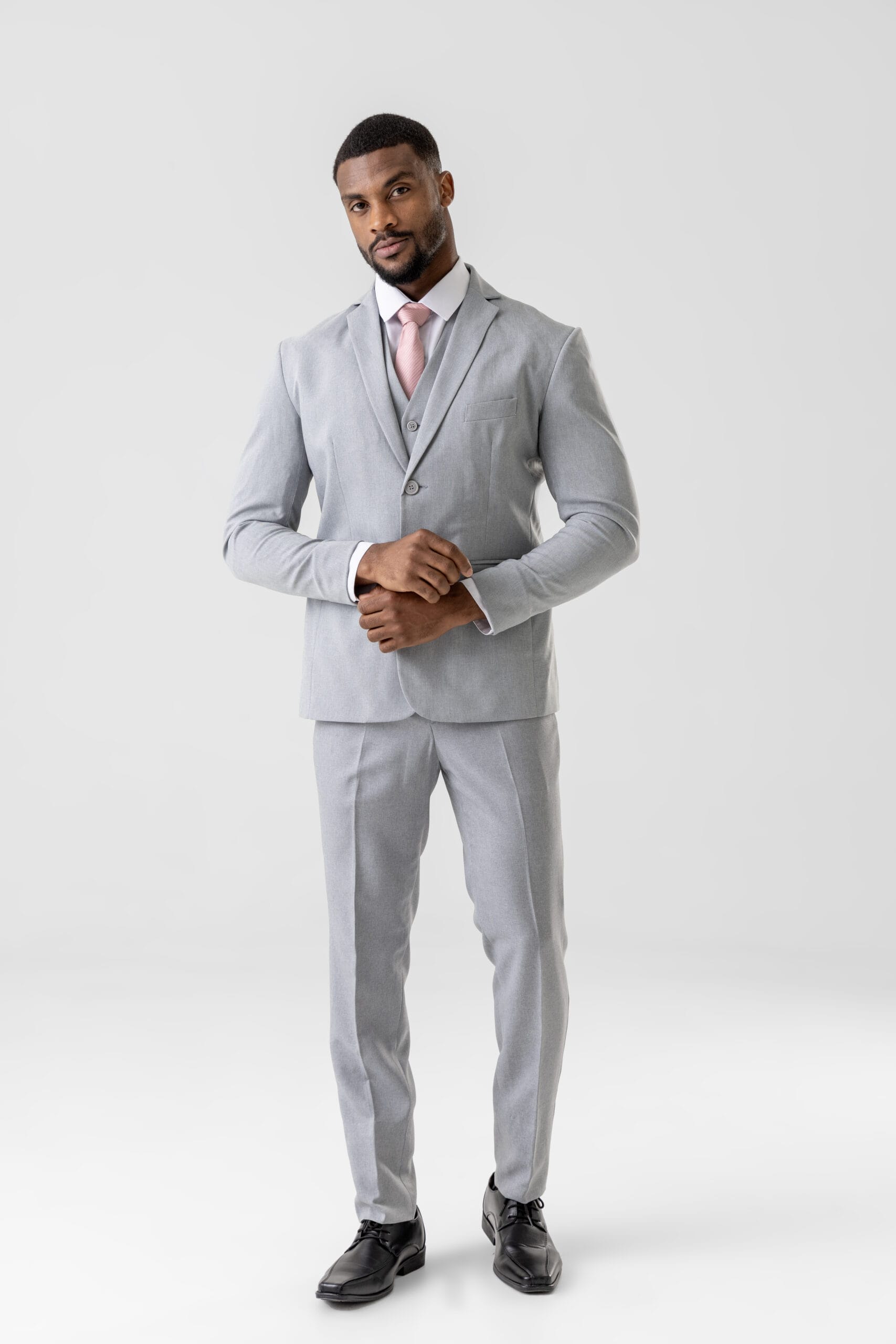 Terno slim cinza claro. Versatilidade e elegância para casamentos, formaturas e eventos sociais.