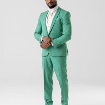 Versátil e sofisticado, o terno verde água é um destaque para eventos ao ar livre e celebrações diurnas. O colete off-white cria contraste elegante, tornando a peça uma escolha refinada e contemporânea para noivos e convidados especiais.