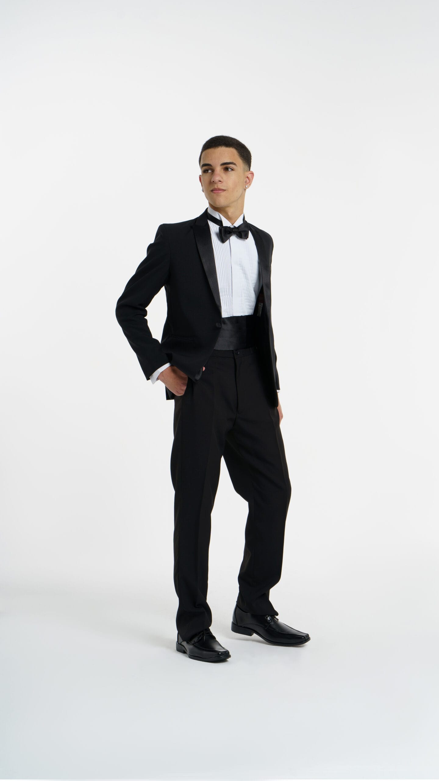 O Smoking Black Formando é a tradução do clássico refinamento masculino. Em preto profundo com lapela em cetim, traz corte slim e caimento impecável. O destaque está na faixa de cetim, que pode ser personalizada com a cor do curso, tornando o look único e cheio de significado. Ideal para formandos que desejam marcar o momento com elegância e identidade.