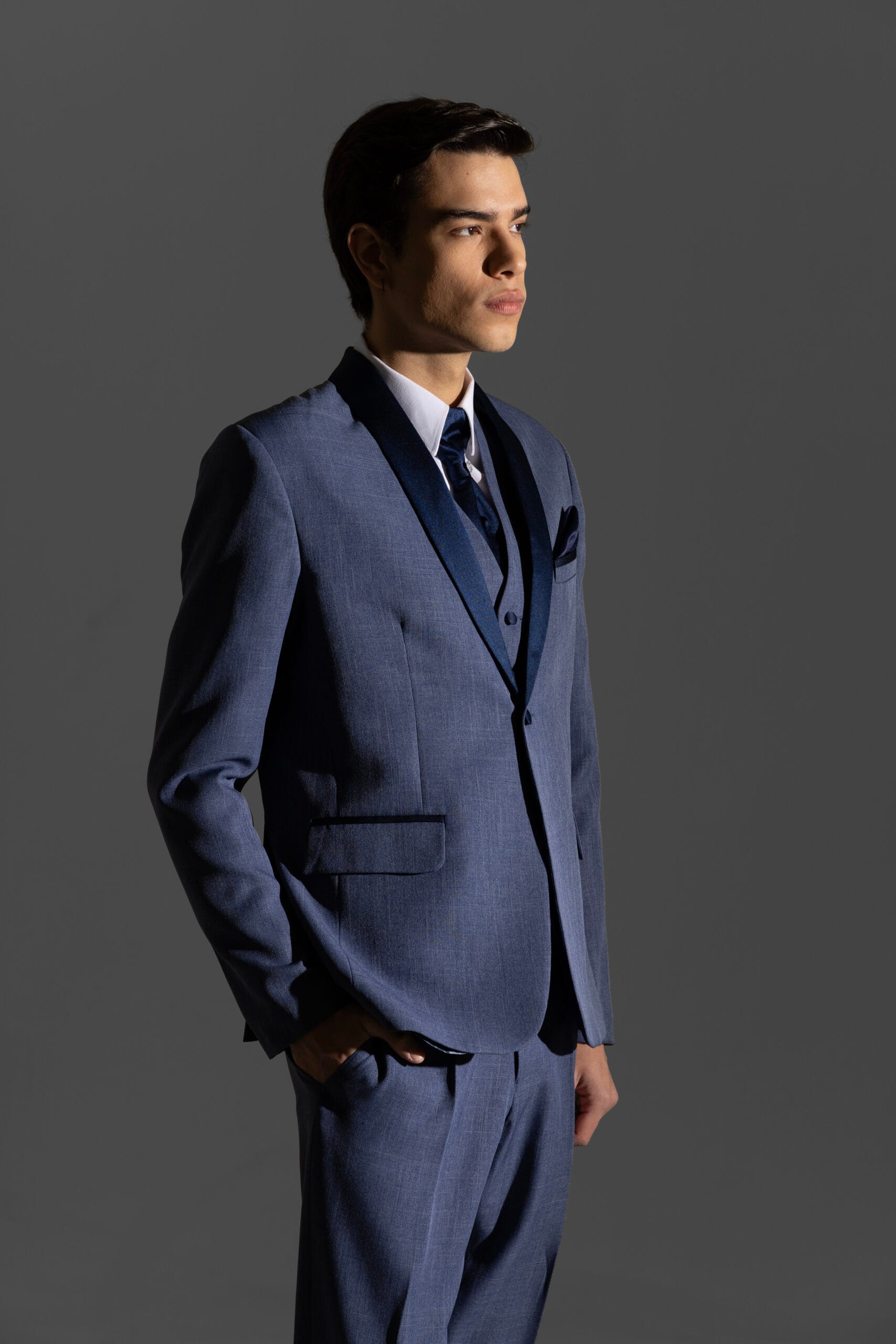 Sofisticado e atemporal, o Smoking Slim Azul Médio traz elegância em cada detalhe. O destaque vai para a lapela em cetim azul marinho e o forro interno floral acetinado, que adicionam exclusividade. Indicado para casamentos, formaturas e eventos noturnos sofisticados